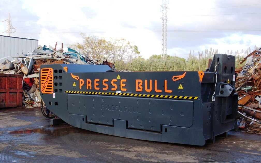 Evoluzione della pressa Archimede 500, predisposta come cassa per una eventuale testa cesoia TAVROS